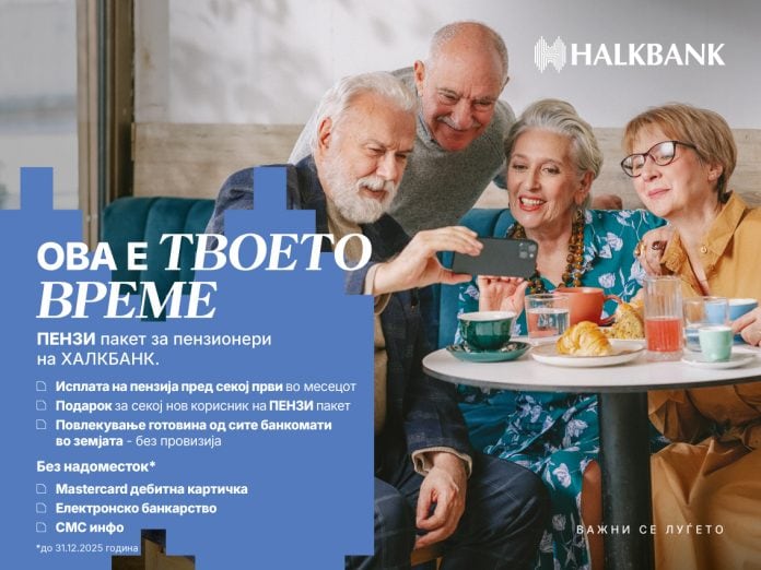 Пензионерите – клиенти на Халкбанк, не само што имаат сигурност во исплатата на пензиите кои ги добиваат предвреме, туку имаат можност да станат корисници на за нив специјално дизајнираниот Пакет за пензионери, кој вклучува бесплатна MasterCard дебитна картичка и е-банкарство без никаков трошок во првата година. Покрај тоа, пакетот вклучува и симболични подароци за сите негови нови корисници.