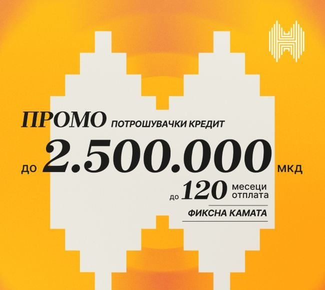 Халкбанк АД Скопје им овозможува на своите клиенти нова можност да ги реализираат своите желби и планови под поволни услови, преку промотивната понуда за Промо потрошувачки кредит, со фиксна каматна стапка за целиот период на отплата.