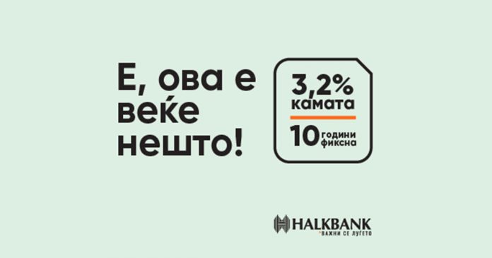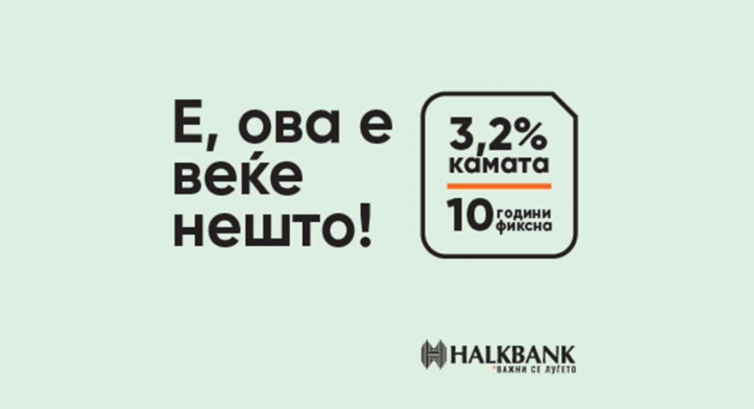 Станбениот кредит обезбеден со пакет полиса за осигурување на Халкбанк е со најниски каматни стапки на пазарот – од 3,2% фиксна за првите 10 години, и 4 процентни поени + променлива стапка на 6 месечен Еурибор за останатиот период на отплата, кој може да биде до 30 години. Дополнително, овој производ е со ниска стапка на вкупни трошоци (СВТ) од 3,25% за кредит со рок од 10 години, и е БЕЗ трошоци за проценка и БЕЗ трошоци за одобрување. Односно, стапката на вкупни трошоци (СВТ) кај овој производ е најниска во земјава, без разлика дали се работи за рок на отплата на 10, 20 или 30 години.