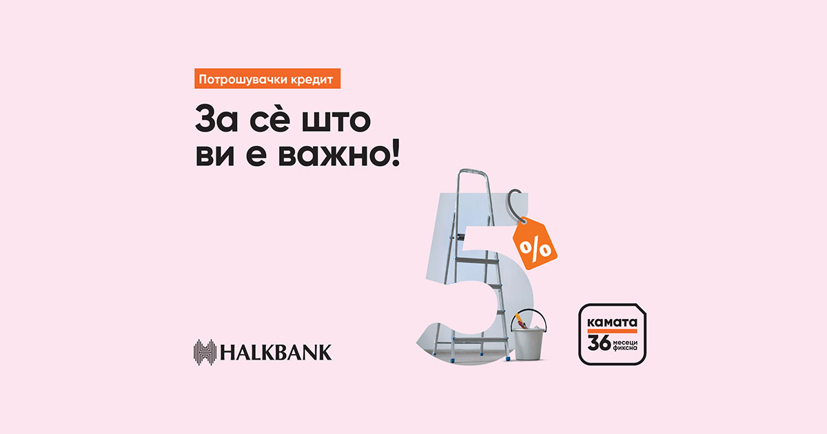 Потрошувачки кредит со намалена каматна стапка од само 5% фиксна за првите три години и со пакет полиса за осигурување од Халк Осигурување е новиот производ на Халкбанк со кој Банката излегува во пресрет на граѓаните во новонастанатата состојба.