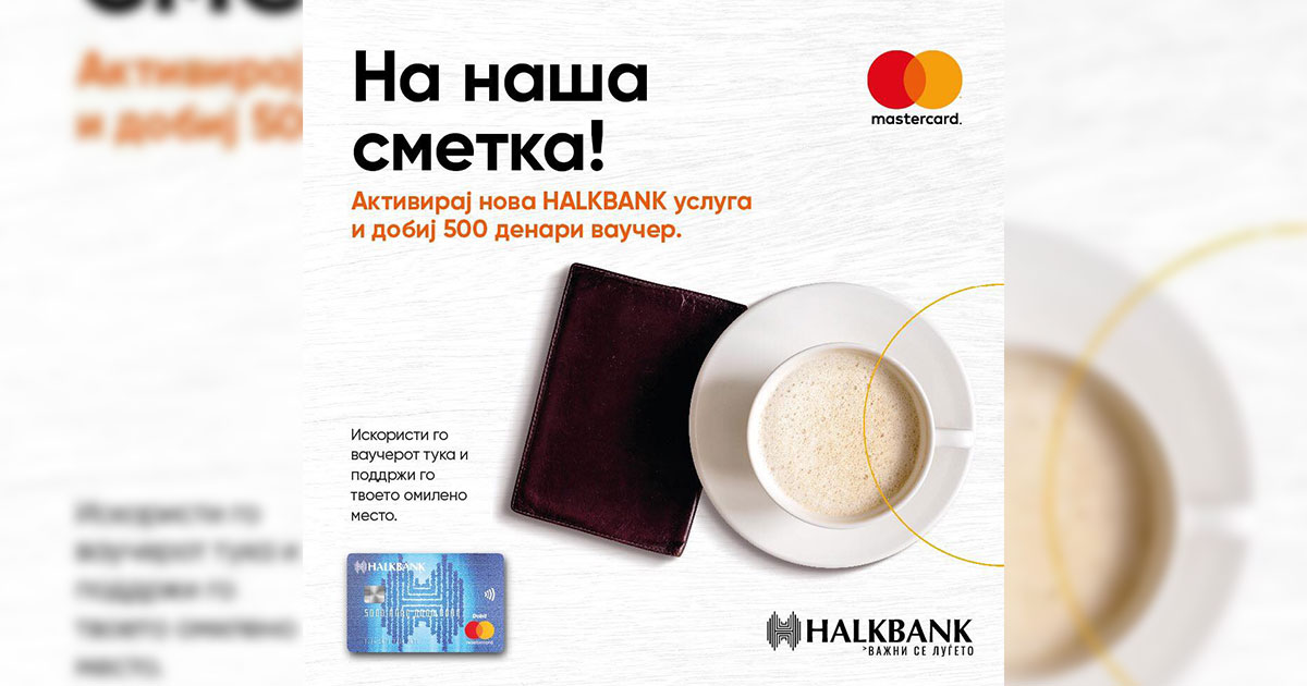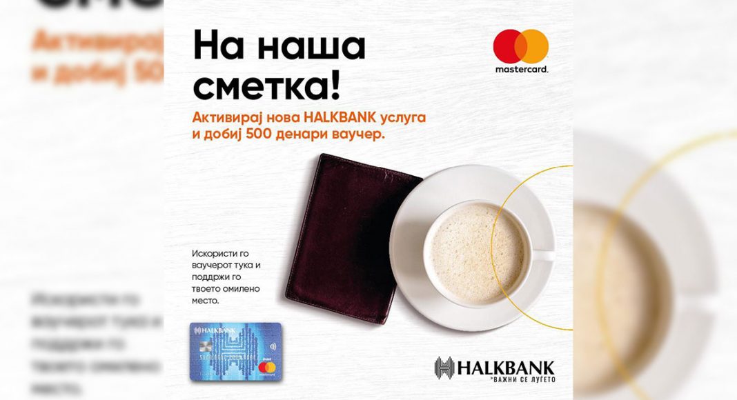 Физичките лица кои ќе отворат трансакциска сметка во Халкбанк преку која ќе добиваат плата или пензија или доколку почнат да штедат во Банката и тоа го направат до 30 септември, ќе добијат вредносен ваучер од 500 денари кој ќе може да го искористат во еден од листата од 135 локали од угостителскиот сектор низ целата територија на земјата, а кои се клиенти на банката. Новата кампања „На наша сметка“ важи и за други продукти на банката како подигање кредит, дозволено пречекорување на трансакциска сметка, е-касичка, е- банкарство или отворање нова Mastercard кредитна картичка.