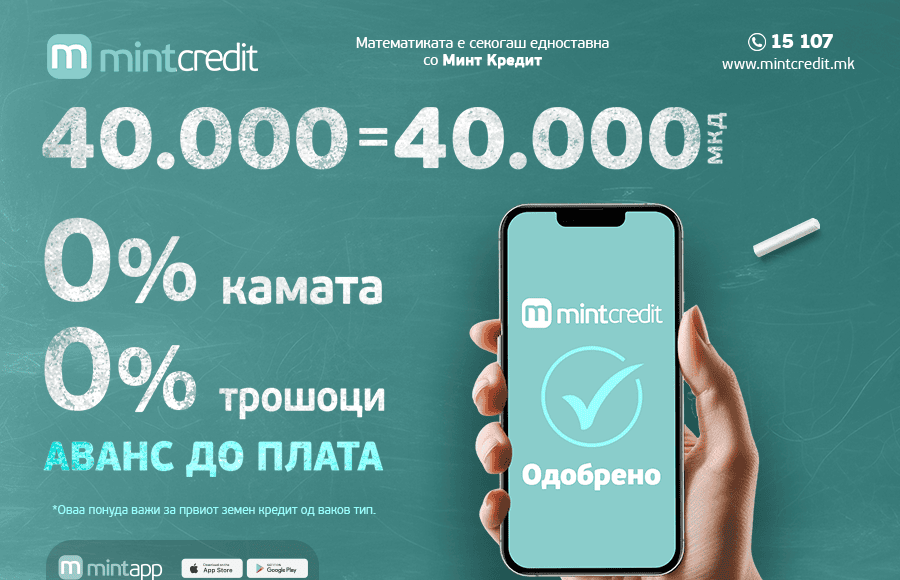 Во свет каде што времето е најскапиот ресурс, а транспарентноста е реткост, Mint Credit го нуди најповолното решение: Аванс до плата со 0% камата и 0% трошоци!