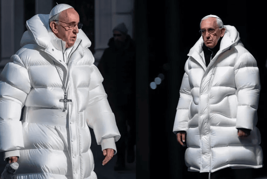 На почетокот на оваа година, папата Франциско беше предмет на многу фотографии генерирани од вештачката интелигенција. „Њујорк тајмс“ објави дека сликите на папата Франциско генерирани со вештачка интелигенција имале повеќе лајкови и коментари од многу други фотографии со вештачка интелигенција. Серијата „дип фејк“ на папата Фрањо облечен во супермодерното бело зимско палто од Баленсијага стана вирална, а на интернет почнаа да кружат и други лажни слики од него како јаде брза храна, свири гитара и нуркање.