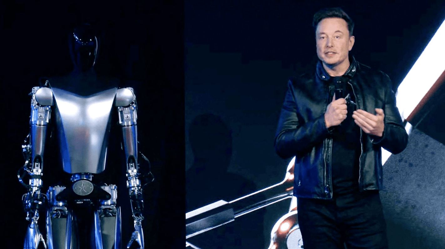 Тесла за првпат ги откри своите планови да работи на хуманоидни роботи во 2021 година на настан на Денот на вештачката интелигенција, додека на сцената беше танчерка во комбинезон што изгледаше како елегантен, андроген робот.