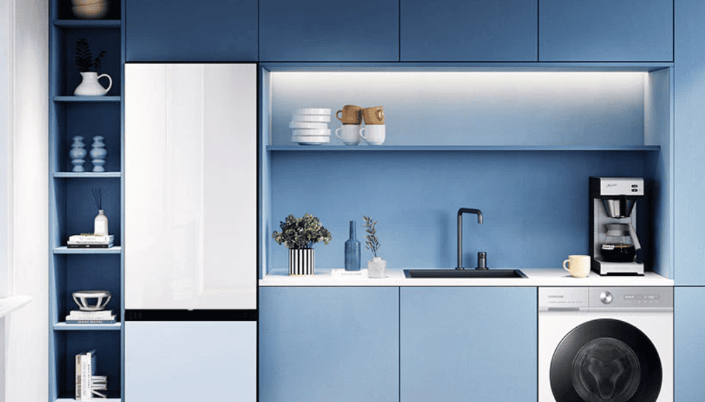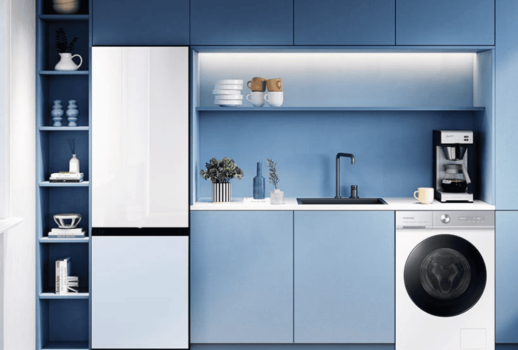 Samsung фрижидерот го претставуваат врвот на технолошките иновации и приспособливиот дизајн. Корисниците можат да избираат помеѓу различни форми и бои за да фрижидерот совршено се вклопи во ентериерот и стилот на нивната кујна и уредувањето воопшто. Еден од новите модели е фрижидерот со замрзнувач RB6000D кој се одликува со иновативен дизајн и многу повеќе простор за складирање храна. Режимот AI Energy Mode во апликацијата SmartThings заштедува до 15% енергија, а покрај тоа што ја одржува храната посвежа подолго време, обезбедува и заштеда на сметката за електрична енергија. Вештачката интелигенција кај овој фрижидер придонесува тој да биде ефикасен и при одмрзнување, регулирајќи ја температурата врз основа на претходните шеми на употреба и условите во околината. Изработен е од најнови материјали, но и покрај тенките ѕидови, тој има совршена изолација со помош на технологијата SpaceMax™.
