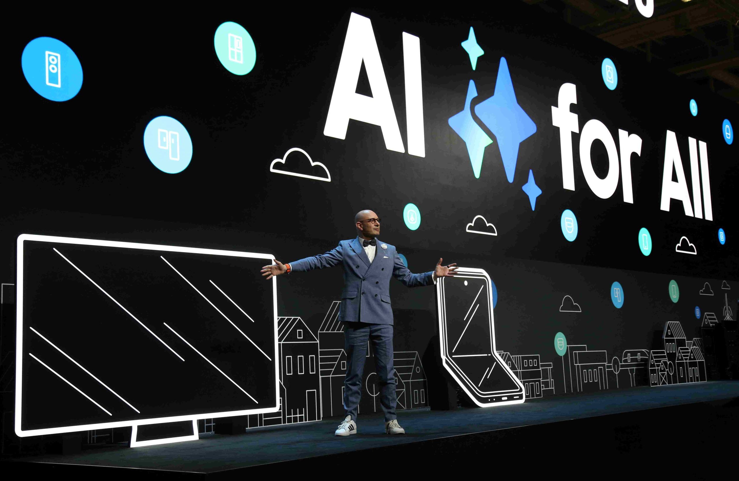 Поглавјето „AI за сите“ на Samsung опфаќа широк спектар на производи засилени со AI, од мобилни уреди до апарати за домаќинство и системи за домашна забава. До крајот на 2024 година, Samsung очекува дека ќе има 200 милиони Galaxy уреди засилени со AI во рацете на корисниците. Samsung разбира дека неговите AI функции треба да се приспособат на тоа како корисниците сакаат да живеат, но и да ги поддржуваат потребите на планетата.