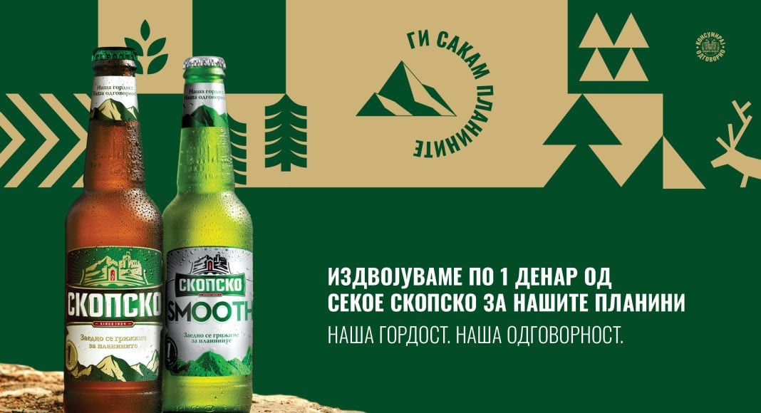 Платформата на СКОПСКО, „Наша Гордост. Наша Одговорност“ се стреми да биде вистински пример за силата на заедничката акција во заштитата на природните богатства на Македонија. Од март започнува кампањата „Заедно се грижиме за планините“ преку која од секое продадено шише „скопско“ или „скопско смут“ со специјална етикета ќе се собираат средства за чистење на нашите планини и обезбедување на урбана инфраструктура.