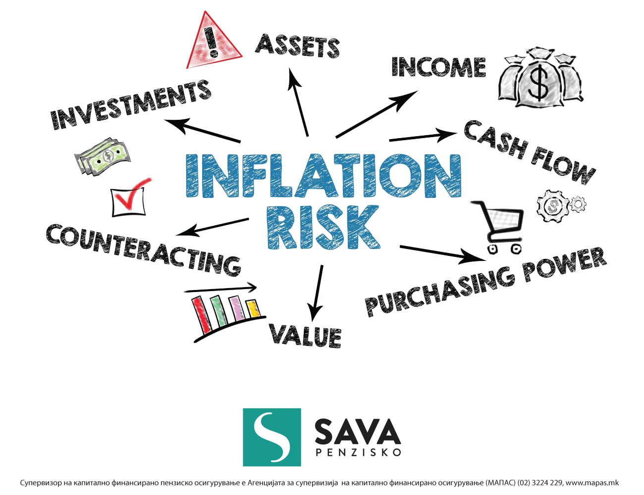 Сава пензиско друштво во поглед на управувањето со средствата на фондот е насочено кон остварување соодветен долгорочен принос на средствата на фондот имајќи ја пред сè предвид суштинската улога на задолжителното капитално финансирано пензиско осигурување, стапката на пораст на трошоците на живот и останатите основни системски параметри на пензиското осигурување. Активниот пристап при инвестирањето на Сава пензиско друштво овозможува изложеност кон компании со квалитетни биланси и силна пазарна позиција кои релативно се помалку погодени во услови на економско окружување со повисока. Зголемувањето на можностите за инвестирање во вложувања кои се високо корелирани со стапката на инфлација е континуирана заложба на Друштвото.