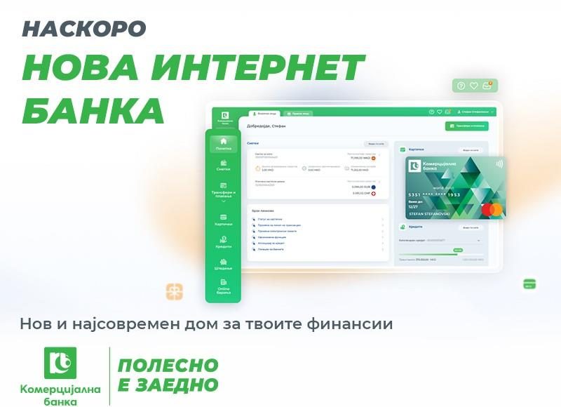 Комерцијална банка со задоволство ја најавува новата Интернет банка со современ дизајн и напредни функционалности за врвно корисничко искуство.