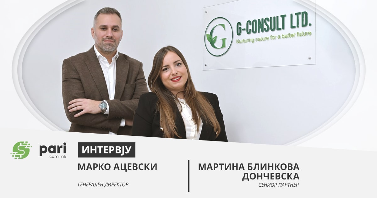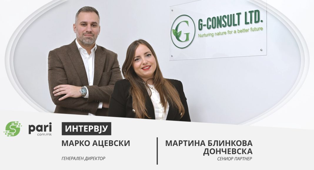 Започнувајќи како приказна за долгогодишно пријателство и соработка, компанијата Г- КОНСАЛТ е пример за успешен бизнис во полето на заштита на животната средина со голем потенцијал. Бизнис партнерите Марко Ацевски и Мартина Блинкова Дончевска, ја насочија заедничката аспирација за нов свеж пристап во консултантството во животна средина усогласен со европските пракси, со што успеаја да развијат успешен бизнис модел со голем број на клиенти и одлични резултати, за краток временски период.