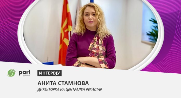 Анита Стамнова: Централен регистар е институција формирана со Законот за Централен регистар. Како централна информативна база на правни и друг вид релевантни податоци кои се внесуваат во него, податоците кои се внесуваат во ЦР електронски се обработуваат, обединуваат, селектираат, чуваат и се прават достапни до крајните корисници. Во сите поголеми градови во Републиката распоредени се 27 канцеларии – 12 регионални и 15 регистрациони, поврзани со IPVPN (виртуелна приватна мрежа базирана на интернет протокол) функционираат поврзано адаптирани на потребите на бизнис заедницата и сите граѓани. Ги следиме и меѓународните практики, речиси на дневно ниво сме поврзани со истородни институции преку организациите каде Централен регистар е членка, сo цел да ги прошириме и развиеме своите бази со дополнителни податоци (формирање нови основни регистри и постојано унапредување на постојните), бидејќи Централен регистар е значаен учесник во креирањето на подобра бизнис клима во Републиката, промотор на странски инвестиции и општествено одговорна институција.