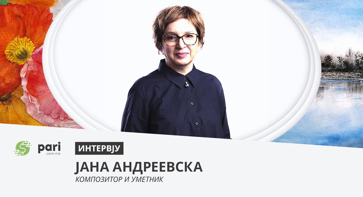 Јана Андреевска е тивката дама која честопати ја среќавав на скопските културни настани, не знаејќи, всушност, многу за неа, освен деке е композиторка. Кога првпат ја слушнав нејзината музика, која блика од емоции и живот, бев затекната од интензинтетот и длабочината, како што бев затекната кога ги здогледав нејзините акварели – како излеани од четката на некој врвен академски мајстор. Со Јана, инаку ќерка на познатите македонски писатели Оливера Николова и Цане Андреевски, разговаравме за тоа од каде влече корен нејзината креативна сестраност којашто ја прави толку посебна.
