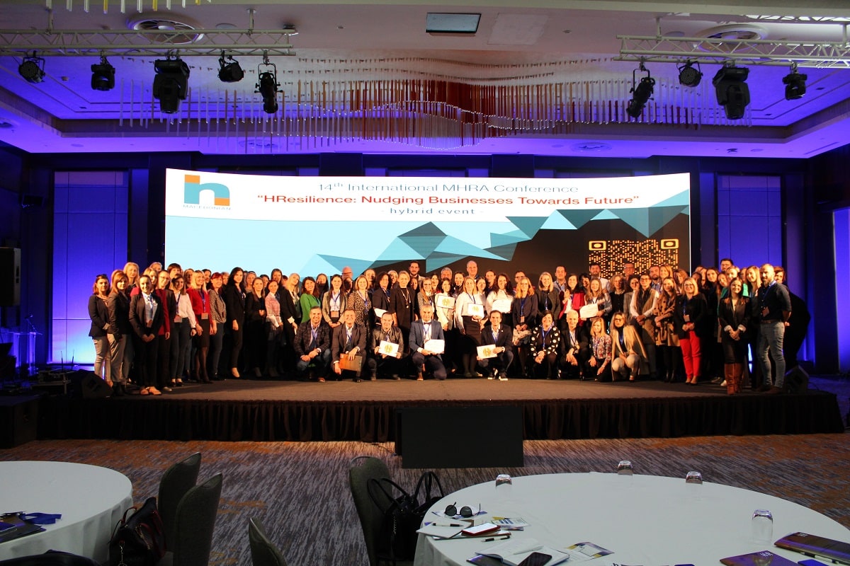 Петровски: После две години он лајн издание предизвикано од Ковид-кризата, повторно во многу сложени економски услови, задоволни сме што, за првпат како хибриден настан, успешно ја спроведовме нашата 14 Меѓународна HR конференција под наслов HResilience – Nudging Businesses towards Future, на која присуствуваа повеќе од 250 учесници во живо и над 100-тина он лајн.На конференцијата, во текот на двата конференциски дена, имавме можност да слушнеме повеќе од дваесетина говорници од земјата и од странство, кои преку пленарни обраќања или преку стручни работилници, споделија свои искуства, концепти, размислувања и практики што се од голема корист за учесниците, особено при нивното практично спроведување во организациите од кои што доаѓаат.На конференцијата, се претставија и околу 15-тина компании со своите услуги и продукти во областа на Менаџментот со луѓе во рамките на традиционалното HR-Експо.