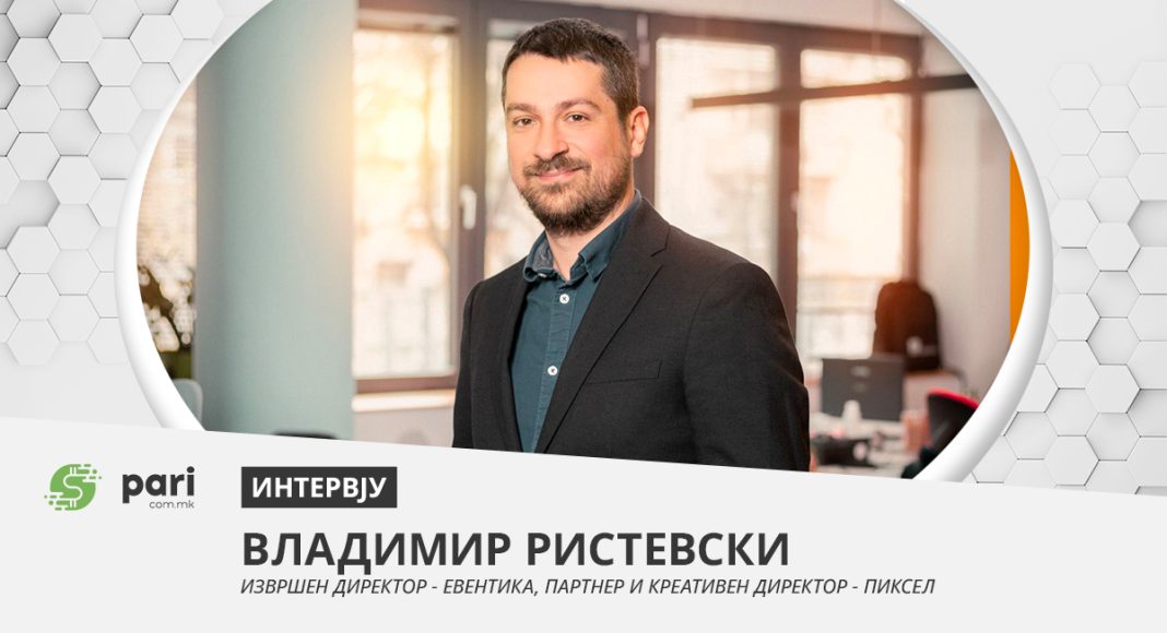 Дејствува во два професионални света, со иста цел – апстрактната визија да се претвори во нешто што луѓето можат да го почувствуваат и доживеат. Во светот на креативната стратегија и во светот на архитектурата на искуства. Владимир Ристевски е извршен директор во Евентика, како и партнер и креативен директор на Пиксел. Нашиот пазар честопати страда од страв од експериментирање, но зоната на комфорот мора да се напушти и „лудите“ идеи да се трансформираат во реални проекти, вели во интервјуто за Пари.