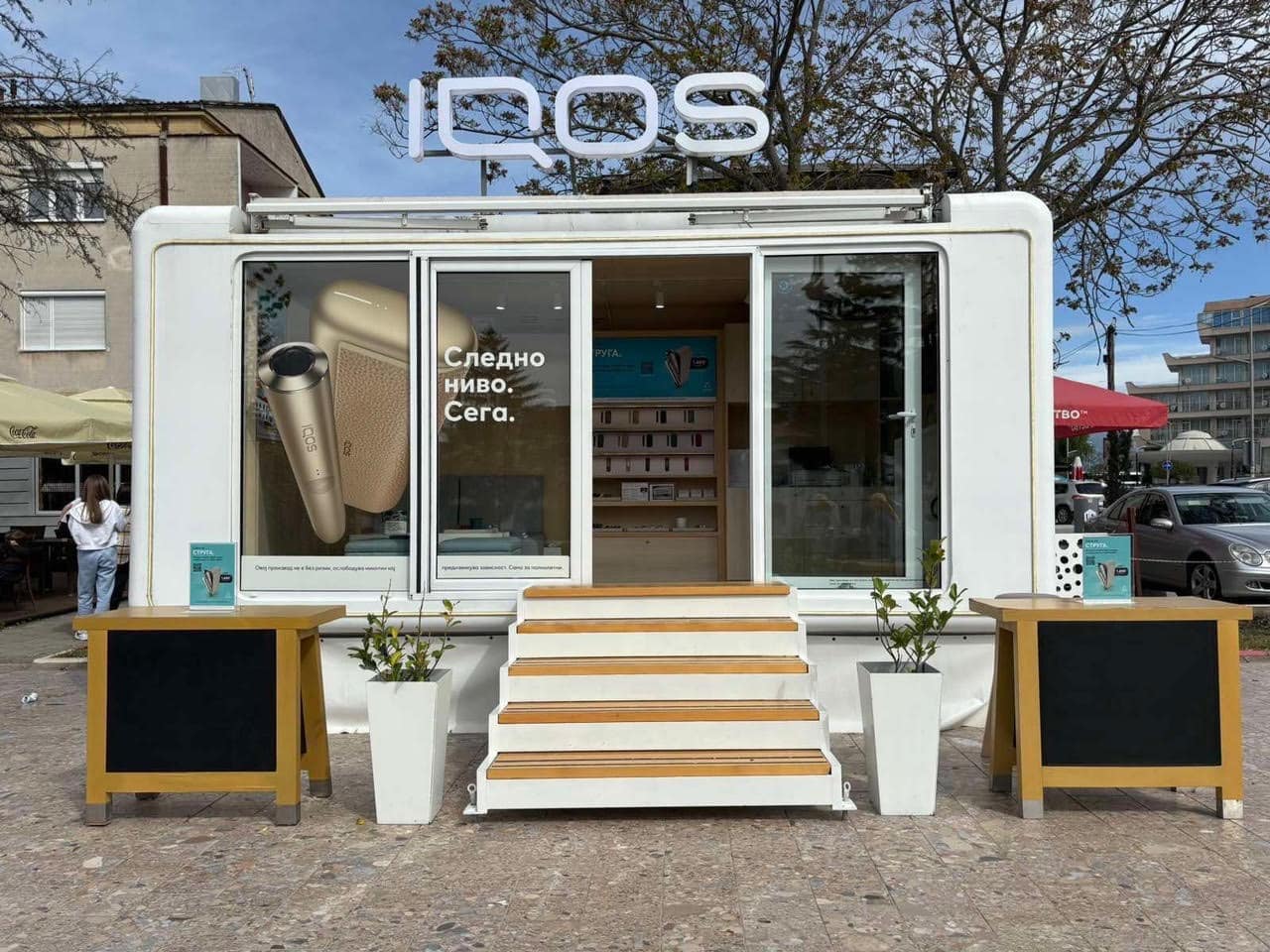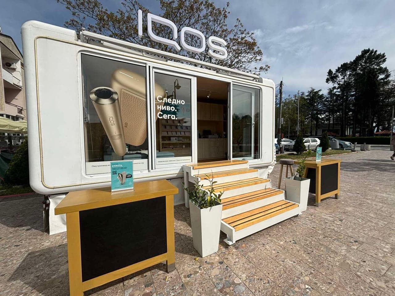 На оваа привремена локација, сите полнолетни пушачи ќе можат да се запознаат со IQOS уредите и да дознаат повеќе за нив и за напредната технологија на индукциско загревање, купување додатоци, замена на стар уред за нов, корисничка поддршка и друго.