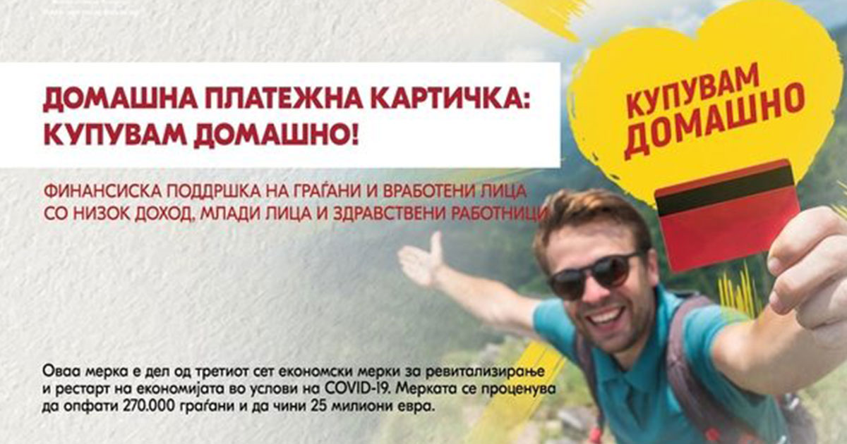 Истекува рокот за предавање на домашната платежна картичка на оние граѓани што ги исполнија условите од оваа мерка што беше дел од третиот пакет-мерки на Владата за поддршка на економијата, а воведен поради корона-кризата. Банките имаа рок да ги издадат до 18 јули, односно утре, а граѓаните може да ги искористат најдоцна на 15 август годинава. Целта е во краток период да се вшприца поголема количина средства во економијата со купување домашни производи и услуги, а со цел поддршка во кризата предизвикана од коронавирусот.