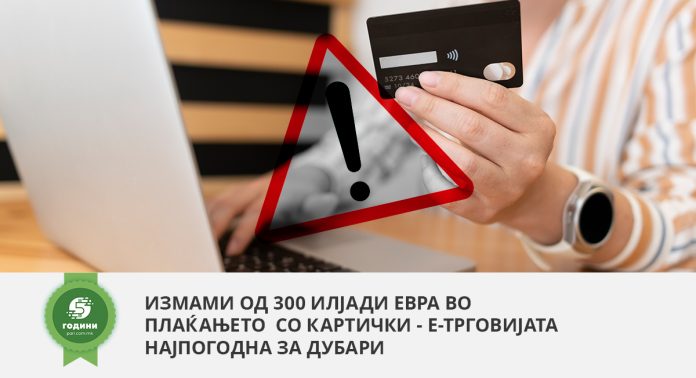 Затоа пак, 4.880 граѓани и 527 правни лица се оштетени во платежни трансакции со картичка. Станува збор за суми од 12.811.293 денари (над 208 илјади евра) кај физичките и од 3.251.577 денари (близу 53 илјади евра) кај правните лица. Од нив, при повлекувањето готовина од банкомати се измамени 11 лица за 44.704 денари (726 евра), а 56 лица при плаќањата преку ПОС терминалите на продажните места со сума од 378.406 денари (над 6.100 евра). Најголемите измами се направени во е-трговијата. На ова поле лошо искуство стекнале 4.813 граѓани, кои претрпеле вкупна штета од 12.388.183 денари (201,26 илјади евра). Воедно, и 527 правни лица – за 3.251.577 денари (близу 53 илјади евра).