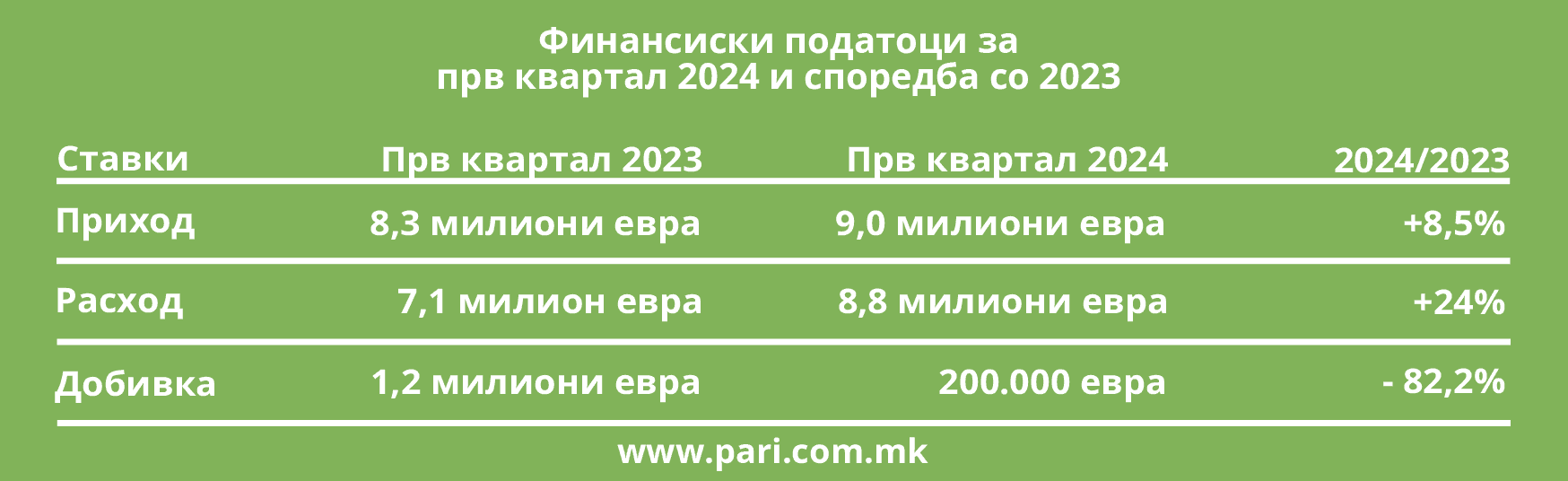 Финансиски податоци за прв квартал 2024 и споредба со 2023
