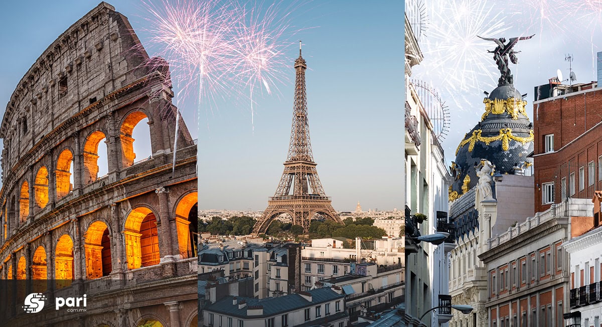 Според туристичките агенции, најголем интерес и годинава има за европските градови, каде што новогодишните аранжмани најчесто опфаќаат три или четири ноќевања со појадок и организиран превоз. За Италија, односно престој во Рим, цените за новогодишен пакет за двајца се движат од 620 евра па нагоре, во зависност од хотелот, датумот на поаѓање и агенцијата. Франција е исто така меѓу најбараните, а дочекот на Новата година во Париз чини од околу 800 евра, со понуди што достигнуваат и до 2.000 евра за покомфорни аранжмани и подобра локација.