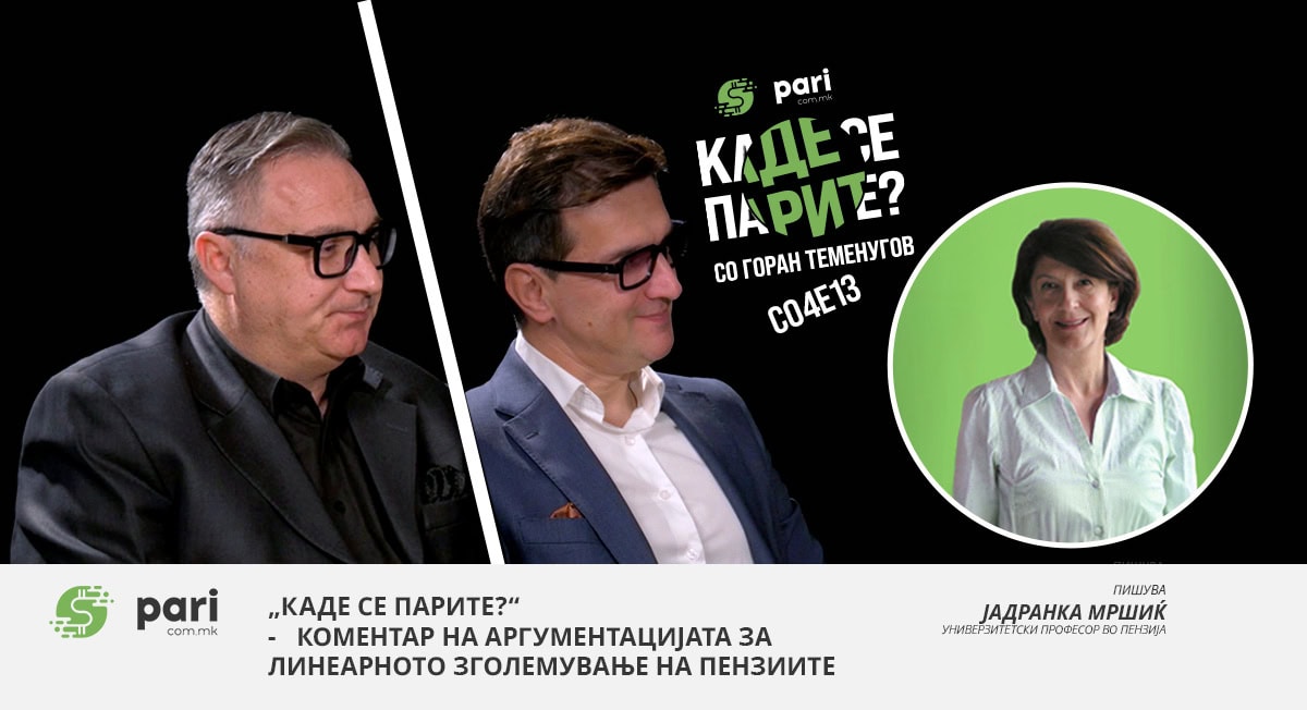 Во поткастот „Каде се парите?“ на електронскиот медиум pari.com.mk, чии учесници беа Никола Мемов, директор на Фондот за ПИО и проф. д-р Лазар Јовевски, советник на премиерот за труд и социјална политика, беа изнесени ставови во врска со линеарното зголемување на пензиите со кои: