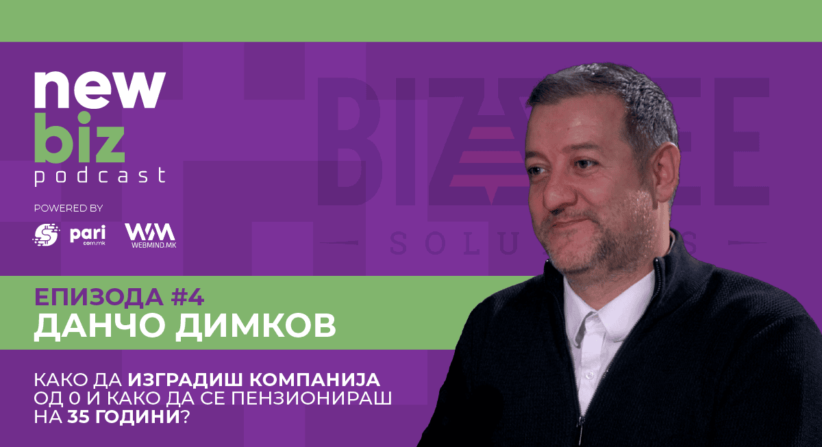 Како да изградиш компанија од нула и како таа компанија после 8 години да сака да ја купи некој за милион евра? Како да се пензионираш на 35 години? Како да бидеш претприемач, автор, консултант, а да ги имаш можноста и луксузот три дена да размислуваш само за стратегија за развој? Одговорот на сите овие прашања ги има Данчо Димков, претприемач, основач и извршен директор на BizzBee Solutions, македонска агенција за продажба, маркетинг и консултански услуги, во разговор со Наташа Велковска во четвртата епизода на поткастот New Biz.