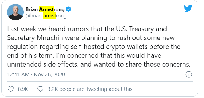 – Брајан Армстронг (@brian_armstrong) 25 ноември, 2020 година