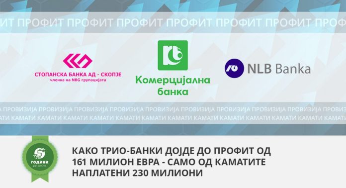Повеќе од 161,5 милиони евра е заедничкиот профит на трите банки кои го држат најголемиот дел од банкарскиот простор во Македонија. Резултатот го претставува исходот од деветмесечното работење, и извесно е дека износот ќе биде повисок откако ќе се сумираат годишните постигнувања.