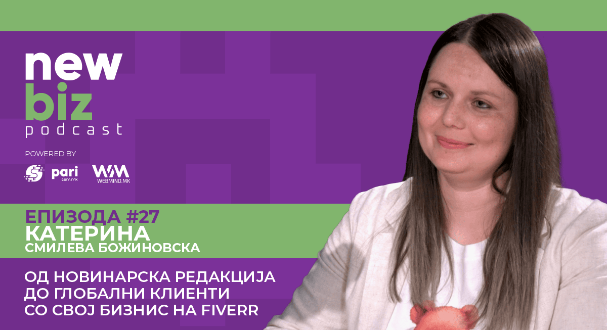 Сѐ повеќе млади професионалци во Македонија ја напуштаат традиционалната рамка на работни односи, барајќи поголема креативна слобода, приходи што можат да се скалабилни и пристап до глобални клиенти. Токму тие три мотиви ја воделе и Катерина Смилева Божиновска да го избере Fiverr – една од водечките светски платформи за дигитални услуги. Во оваа епизода на New Biz Podcast Наташа Велковска разговара со Смилева Божиновска за нејзиниот сопствен бизнис модел поставен врз принципи на стабилност, раст и професионализам, кој веќе ги надминува рамките на класичниот фриленсинг.