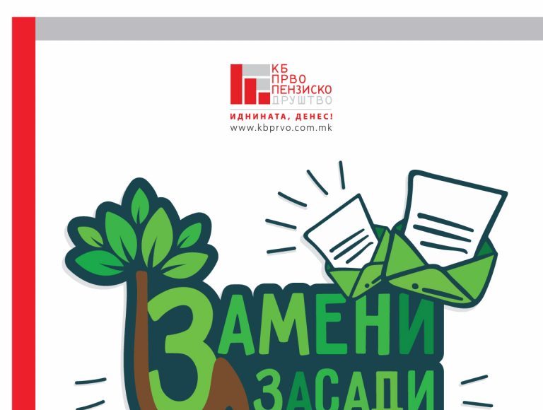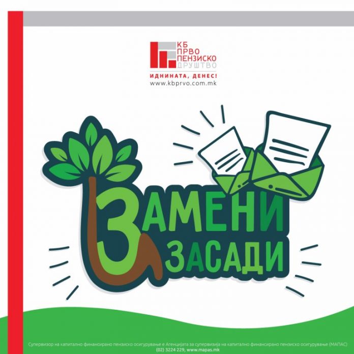 “Повеќе зеленило, почист воздух, подобрување на здравјето на граѓаните, подобрување на микроклимата, зачувување на биолошката разновидност и уште многу други придобивки се впишуваат на листата позитивни ефекти коишто би се случиле во животната средина со засадување на повеќе дрвја. Да придонесеме заедно за поздрава животна средина и почист воздух. Поддржете ја нашата мисија “Замени и засади” и дајте придонес во зачувување и унапредување на животната средина, апелираат од КБ Прво пензиско друштво.