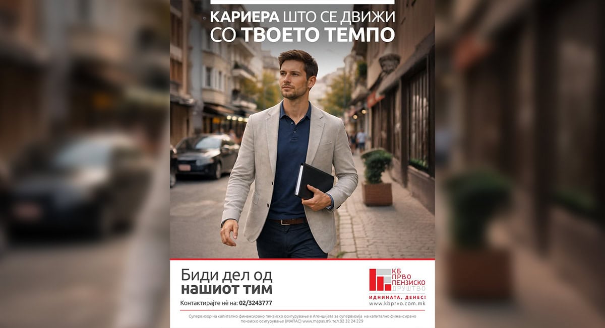 КБ Прво пензиско друштво АД Скопје, лидер на пазарот на пензиско осигурување во земјава, објави оглас за вработување на стручен соработник за продажба, нудејќи стабилна кариера, долгорочна перспектива и можности за професионален развој.