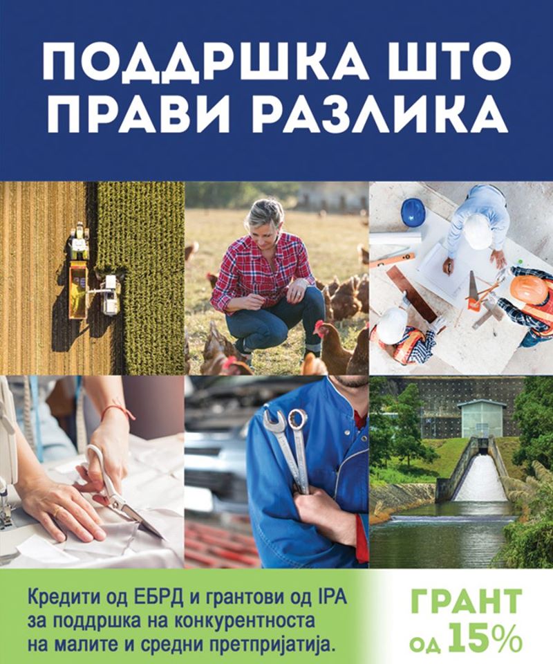 Комерцијална банка АД Скопје во соработка со ЕБОР и Европската Унија (ЕУ-ИПА Фондови) нуди кредитна линија наменета за поддршка на конкурентноста на МСП