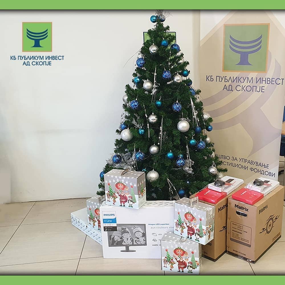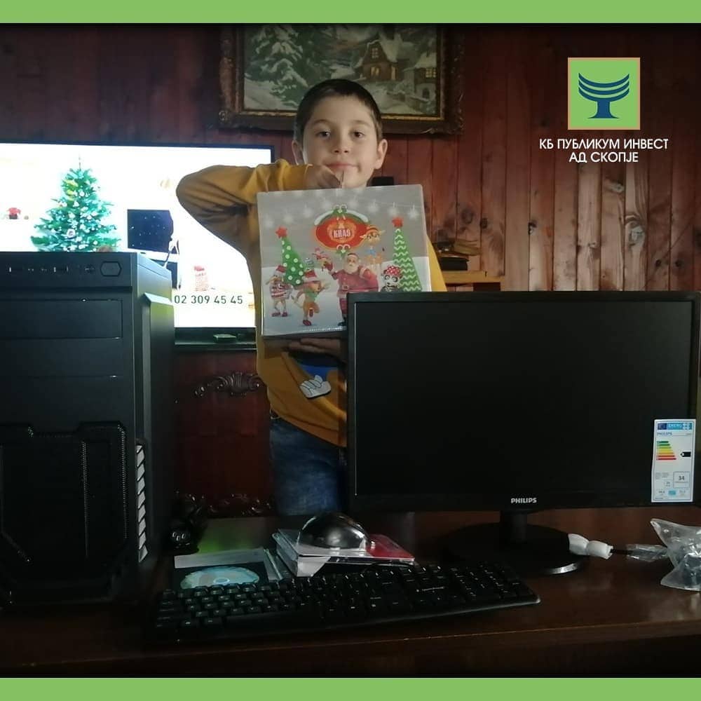 Во рамки на новогодишната традиција, КБ Публикум инвест направи чекор повеќе во своите можности и обезбеди 13 компјутери со монитори и целокупна опрема за непречено следење на наставата во училиште на децата од најранливите категории и со ниски примања.