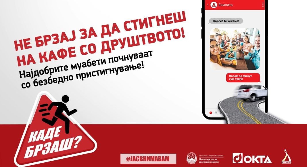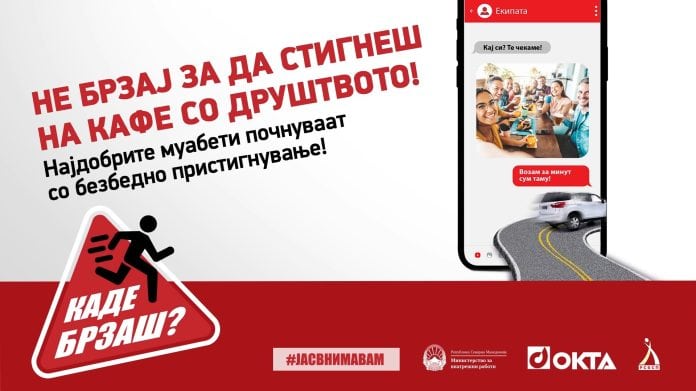 Под мотото „Каде брзаш? Не брзај за да стигнеш!“ стартува кампањата за безбедност во сообраќајот на ОКТА, Министерството за внатрешни работи (МВР) и Републичкиот совет за безбедност во сообраќајот на патиштата (РСБСП). Целта на кампањата е подигнување на свеста во јавноста за важноста на поголемото внимание на сите учесници во сообраќајот. Во рамките на кампањата ќе бидат преземени низа активности кои на иновативен начин ќе информираат, едуцираат и ќе алармираат за поголема одговорност во сообраќајот.