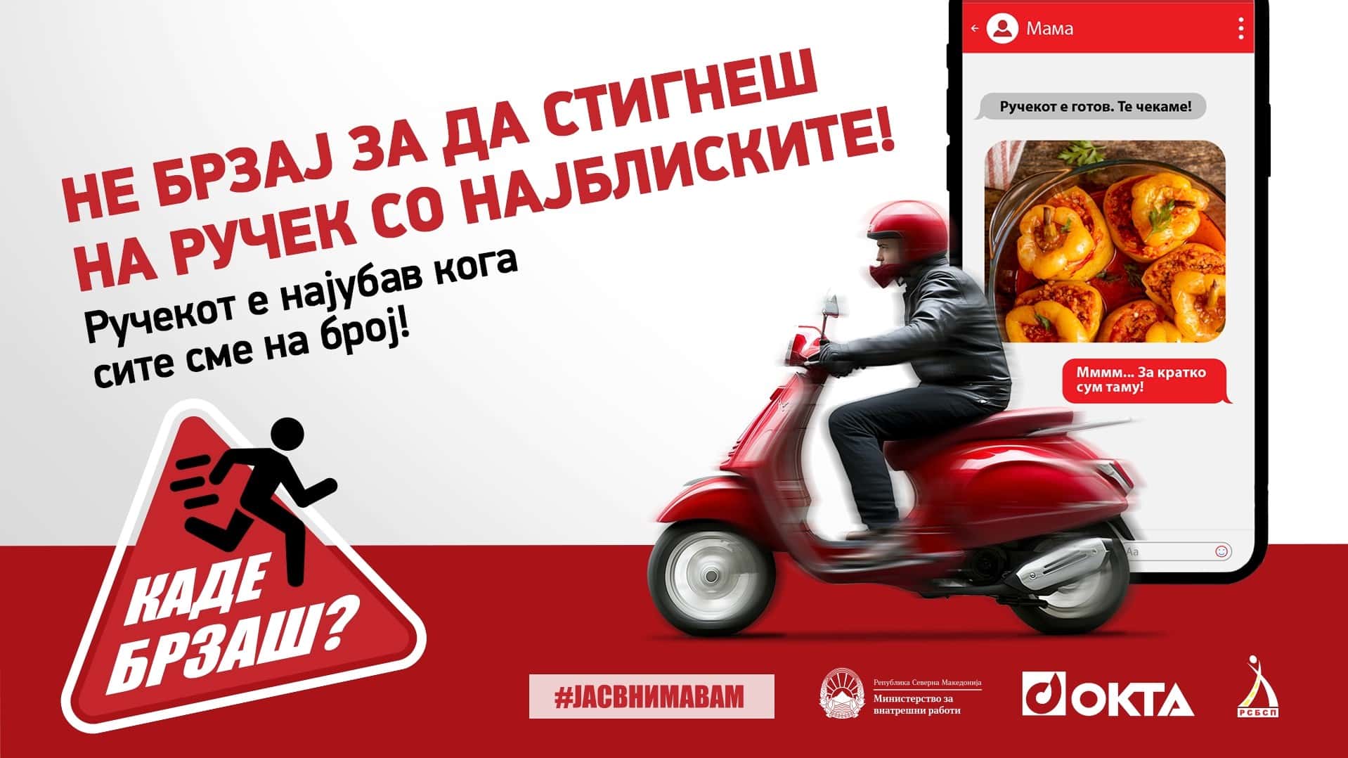 Кампањата „Каде брзаш? Не брзај за да стигнеш!“ е фокусирана на предупредување на јавноста за опасноста од неодговорно однесување во сообраќајот преку реални животни ситуации, со цел да поттикне промена на навиките и однесувањето на учесниците во сообраќајот.