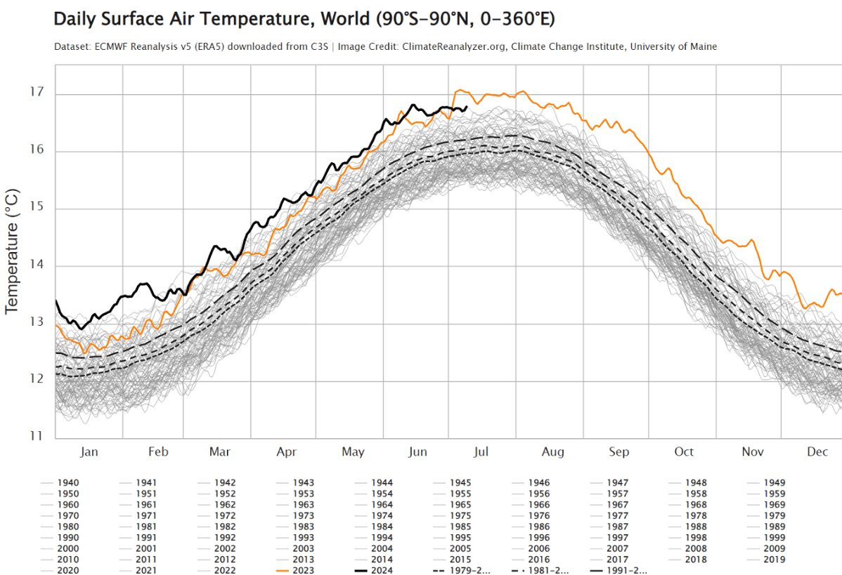Временската динамична временска шема започна овој јули по првиот значаен топлотен бран во летната сезона во 2024 година на крајот на јуни. Но, набргу потоа, општата шема се префрли во стабилна, предизвикувајќи продолжен топлотен бран низ дел од континентот. Температурите се во пораст и се прогнозира дополнително покачување оваа недела.