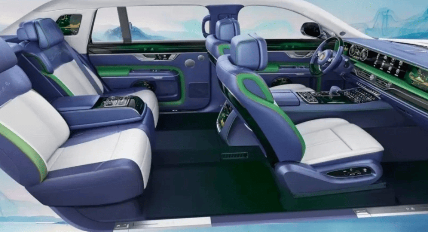И покрај импресивниот простор во внатрешноста, моделот доаѓа со распоред со четири седишта. Задниот дел има вистински фотелји за оние кои претпочитаат да бидат со шофери во исклучително раскошен амбиент. Кинескиот производител на автомобили стави вистински жад во кабината и излезе со многу смели комбинации на бои, што можеби не е толку смело за кинеските клиенти.