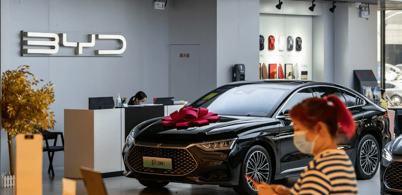 Продажбата на патнички автомобили во Кина е намалена за 13% во првиот квартал, покажуваат податоците од Кинеската асоцијација за патнички автомобили. Но, продажбата на ЕВ и plug-in хибриди – област каде што сега доминираат кинеските производители на автомобили предводени од BYD – се зголеми за 22%. Продажбата на возила со внатрешно согорување е намалена со речиси еднаква разлика.