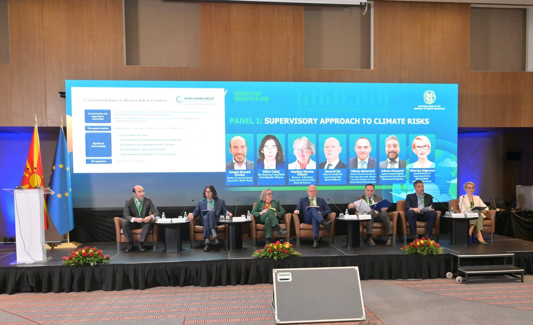 На Конференцијата, во панел дискусиите искуствата од државите од каде што доаѓаат ги пренесоа претставниците на централните банки. Што се однесува до земјите од Западен Балкан, сите ги имаат почнато со рализација на активности, а заедничко е согледувањето – многу се поподготвени банките што се дел од европските банки, затоа што нивните можности се многу поголеми. И од аспект на реесурсите и од аспект на трошоците, затоа што зелената трансформација е скапа инвестиција. Сепак, како заеднички проблем, присутен и во ЕУ, е ниската достапност на податоците врз кои се градат плановите, се прават проценки и стратегии.