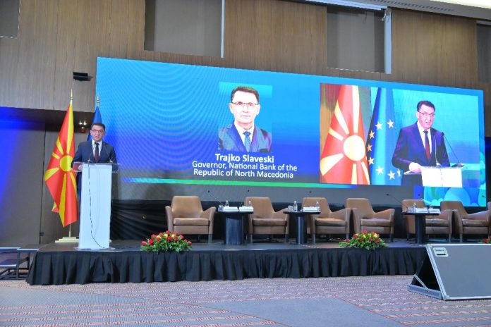 „Климатските промени сè поинтензивно влијаат врз економиите и финансиските системи, а ризиците поврзани со климатските промени претставуваат значаен фактор кој влијае врз ценовната и финансиската стабилност. Поради тоа, централните банки веќе ги интегрираат овие ризици во аналитичките и супервизорските рамки. Пристапот на Народната банка ги следи меѓународните практики. Планираните активности од усвоениот Среднорочен план на активности за периодот 2023-2025 година се во завршна фаза, супервизорските очекувања се вградени во Насоките за управување со климатските ризици за банките, а климатските ризици се интегрирани во регулаторната рамка за кредитен ризик и регулативата за обелоденување податоци и известување. Анализите за влијанието на климатските ризици врз банкарскиот систем се составен дел од нашиот Извештај за финансиската стабилност, а тековно се работи на развивање климатски сценарија и стрес-тестови“, истакна гувернерот на Народната банка, Трајко Славески, на отворањето на Конференцијата.