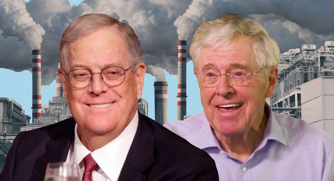 Па да видиме колку се моќни браќата Кох. Тие се меѓу првите десет најбогати луѓе во светот, кои имаат богатство од 42 милијарди долари секој. Нивната компанија Кох Индустри е еден од најголемите нафтени конгломерати и втора најпрофитабилна приватна корпорација во САД.