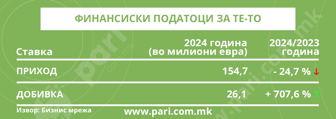 Втора асоцијација на компанија поврзана со Русија кај нас е ТЕ-ТО, компанија што произведува струја и истовремено парно греење за голем дел од семејствата во Скопје. Оваа компанија лани направила приход од 154,7 милиони евра (речиси ист како и Лукоил). Овој промет на ТЕ-ТО е за 24,7 насто помал отколку во 2023 година. Но, наспроти тоа, ТЕ-ТО лани имал раст на добивката од фантастични 707,6 насто! Неговата добивка во 2024 година била 26,1 милион евра.
