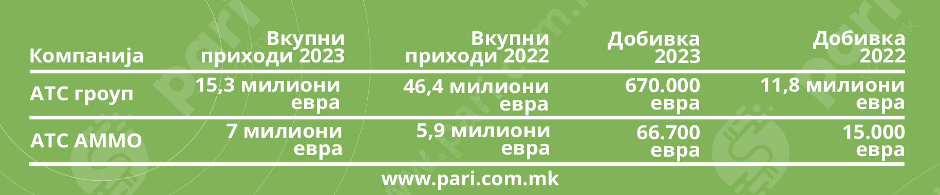 Според податоците од БизнисМрежа, АТС АММО лани имал скромна добивка од 66.700 евра, а вкупен промет од 7 милиони евра.