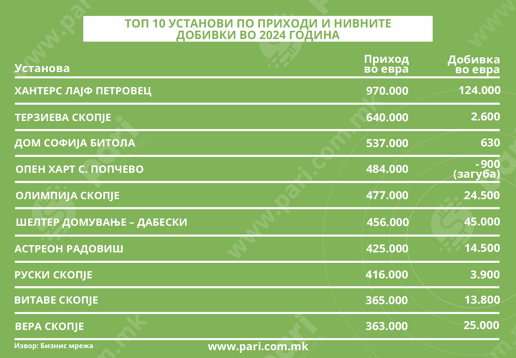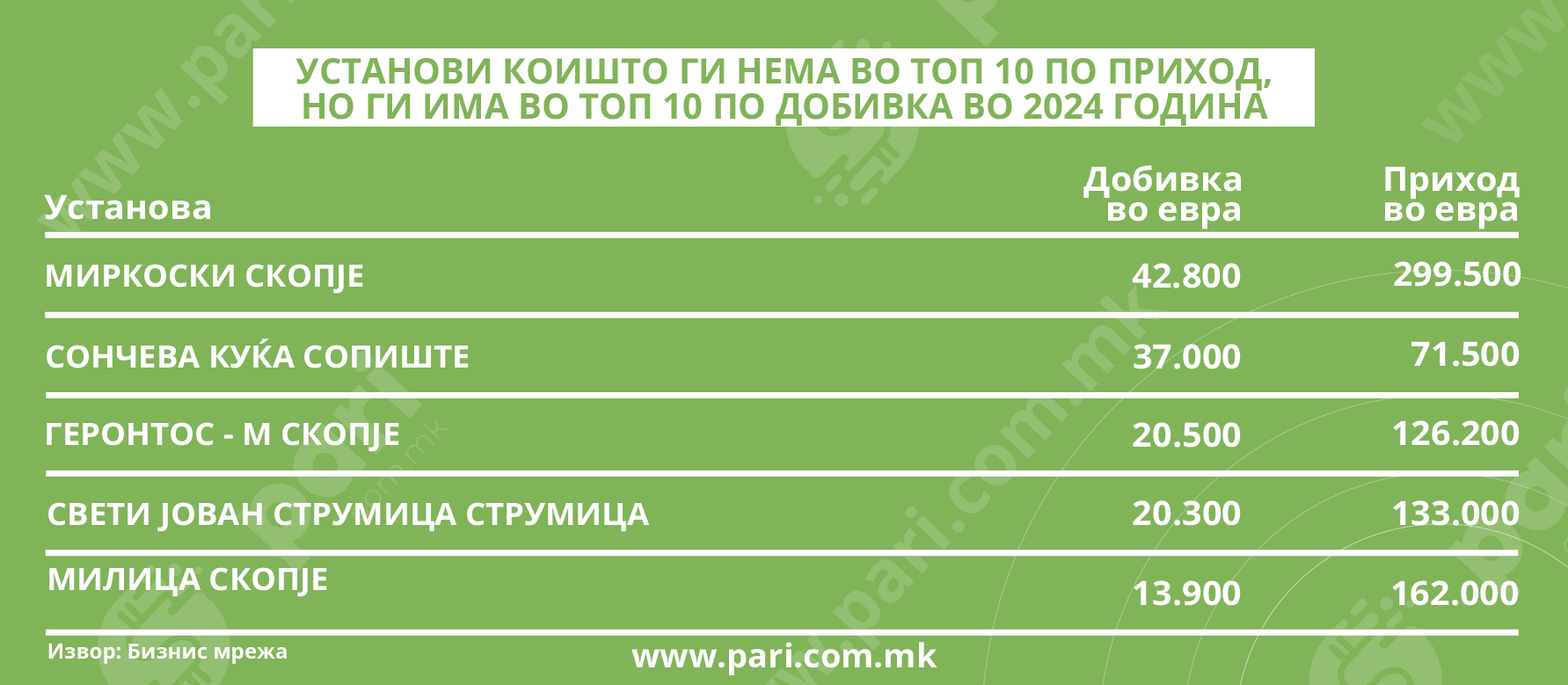 ТОП 10 установи по приходи и нивните добивки во 2024 година