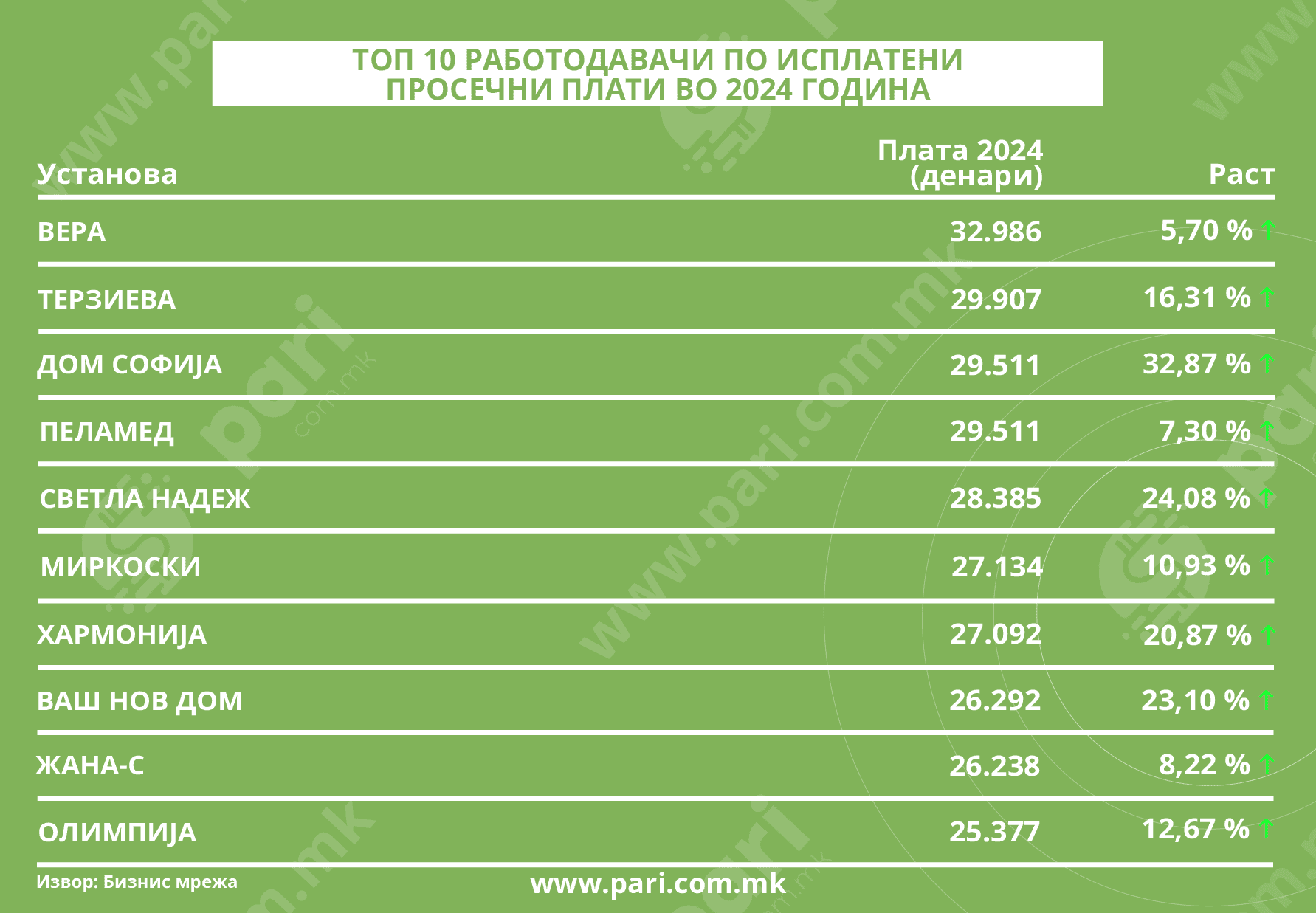 ТОП 10 работодавачи по исплатени просечни плати во 2024 година