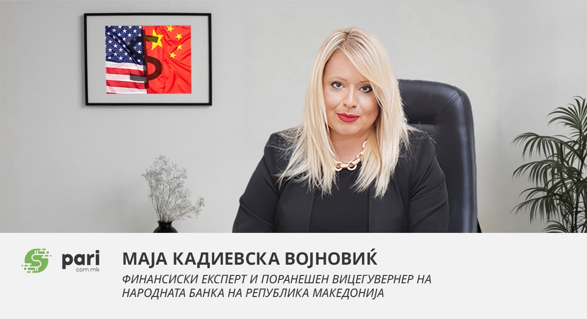 Трамп, не прави ништо поразлично од Кина. Но, воведувањето на царините како протекционистичка мерка за ограничување на увозот и посакуваната депрецијација на доларот заради зголемување на извозот, не одат заедно со желбата да се одржи меѓународната доминација на доларот како резервна валута. Слабиот долар би бил помалку атрактивен за странските централни банки, што би можело да го загрози неговиот статус како резервна валута. Сепак, администрацијата на Трамп предвиде одговор на оваа противречност со закана на земјите кои имаат намера да ги намалат своите доларски резерви со царини што би можеле да достигнат 100%. Оваа закана ја демонстрира суштинската врска помеѓу трговската војна и војната за задржување на доминацијата на американскиот долар (Ерик Монет, SUERF, април 2025 година). Што ќе се случи по преговорите и паузата на високите тарифи, во очекување сме да видиме. Јасно е дека војната некако, засега, се сведе на двата главни фронта (за тоа во наредната колумна).