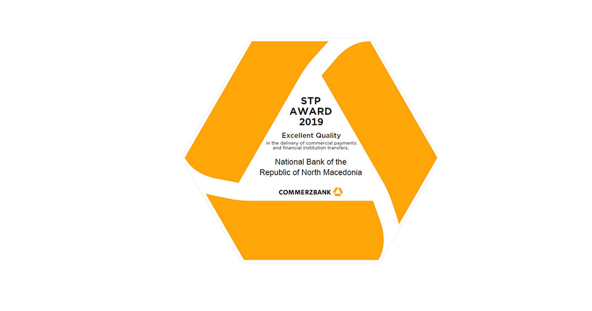 Народната банка е добитник на наградата на една од водечките меѓународни деловни банки во Европа, „Комерцбанк“, за 2019 година, за одличен квалитет при обработката на комерцијалните плаќања и финансиските трансфери, соопшти Народна банка.