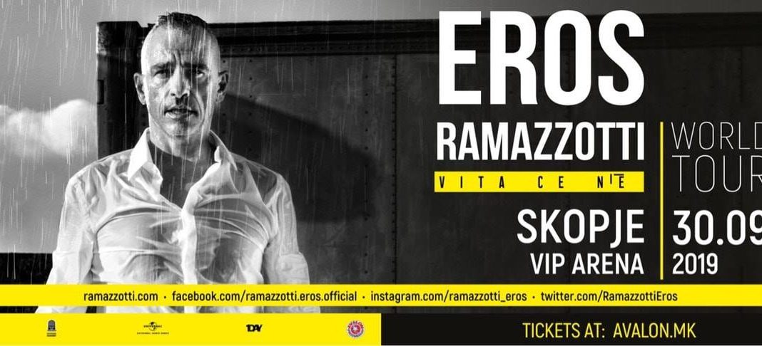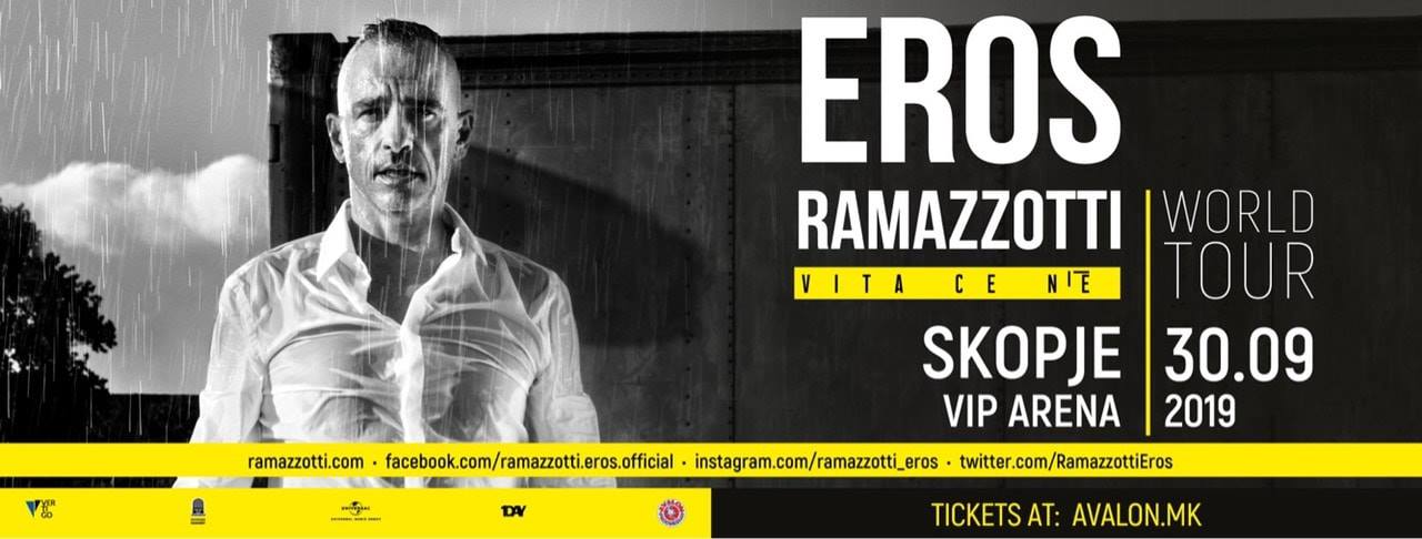 После концертот на Sting, Комерцијална банка АД Скопје со задоволство ја објавува својата поддршка на уште еден извонреден музички настан кој ни претстои – концертот на Eros Ramazzotti, кој во рамките на светската турнеја го промовира најновиот студиски албум со наслов „Vita ce n`e’“.