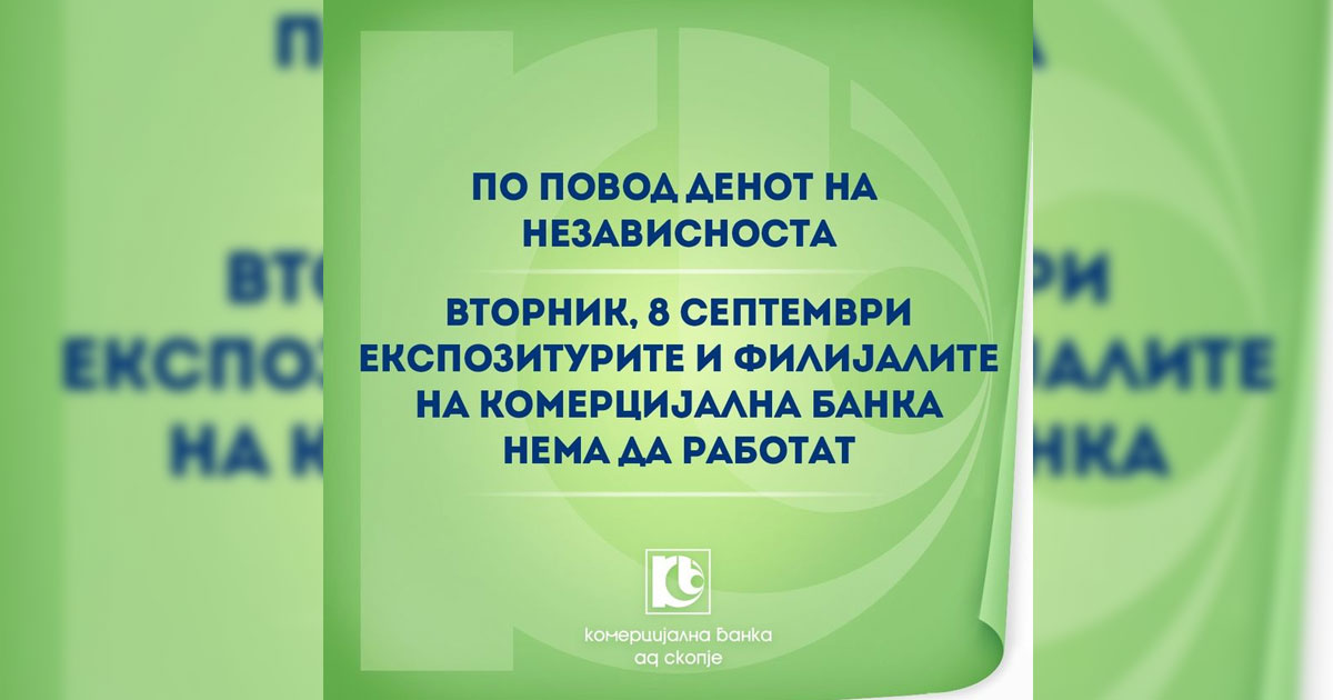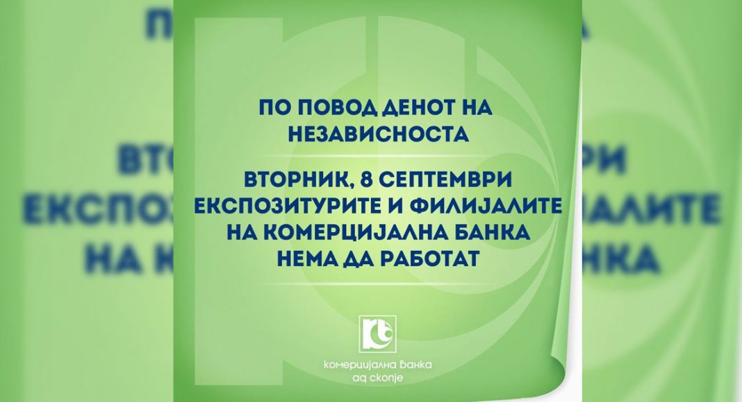 Комерцијална банка АД Скопје известува дека за подигнување и уплата на готовина ќе може да се користат банкоматите на Банката, а за други финансиски трансакции на располагање, клиентите ќе ги имаат веб и мобилните апликации Интернет банка и мБанка.