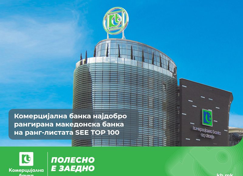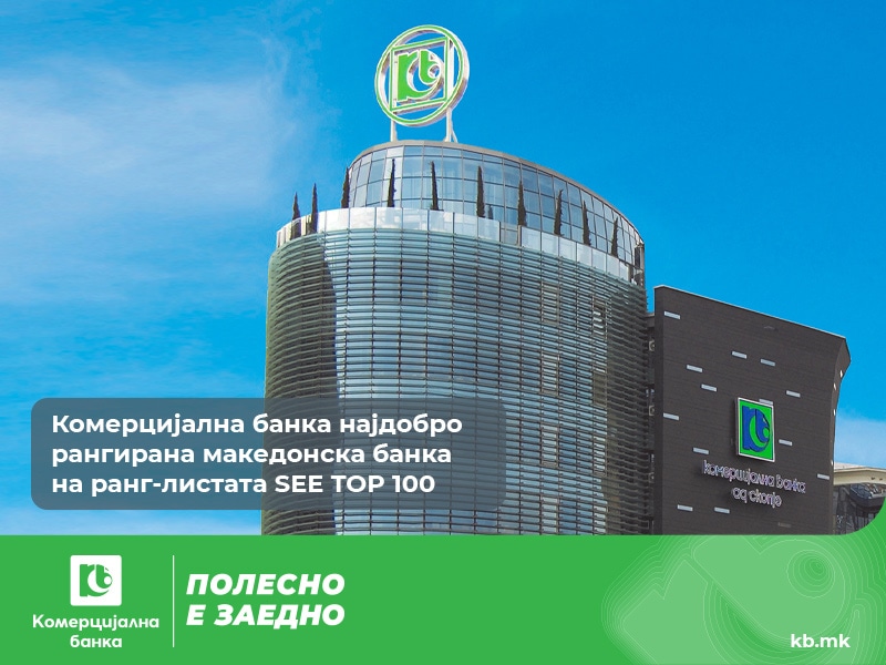 Комерцијална банка и оваа година е најдобро рангирана македонска банка на ранг-листата SEE TOP 100 најголеми банки во Југоисточна Европа, објавена од порталот SeeNews.com.