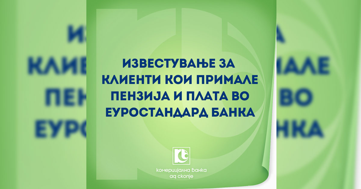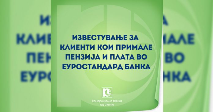 Комерцијална банка АД Скопје од 14.08.2020 година, преку брза и едноставна процедура ќе им одобри дозволено пречекорување на клиенти кои имале активна сметка во Еуростандард банка АД Скопје и на која примале плата или пензија. Понудата се однесува на сите бонитетни клиенти кои имаат солиден рејтинг во кредитниот регистар на НБРСМ, односно се класифицирани во ризична категорија А или Б.